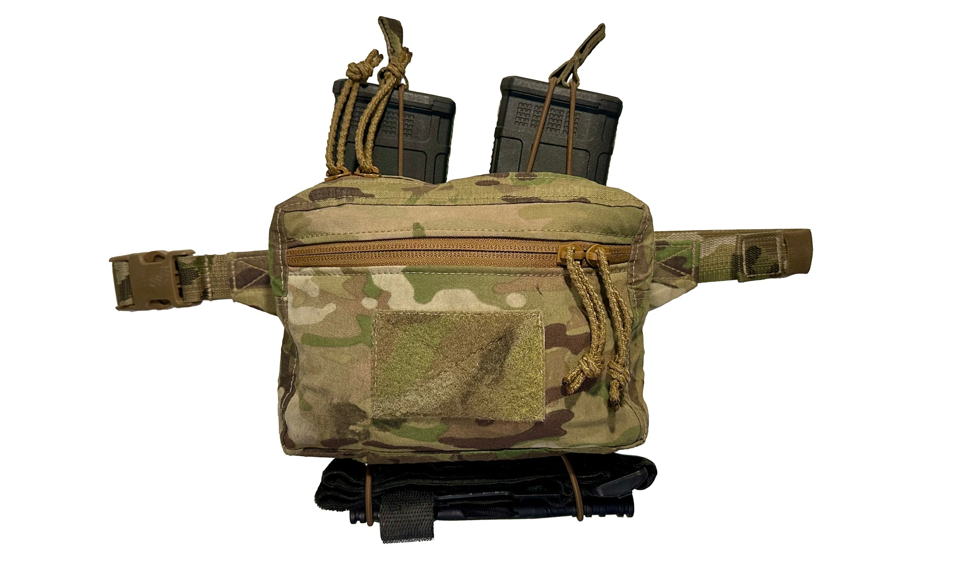 The Double 5.56 Fanny is based on the original X-Pac Fanny Pack with added elastic mag pouches. This product can be utilized as an additional fighting load holding critical equipment and extra mags or as a semi-concealable mag carrier during low vis operations. The Double 5.56 Fanny has a main compartment, stretch front pocket and two elastic 5.56 mag pouches. In addition to 5.56 mags this fanny pack will accept standard .308 and 7.62 AK mags.